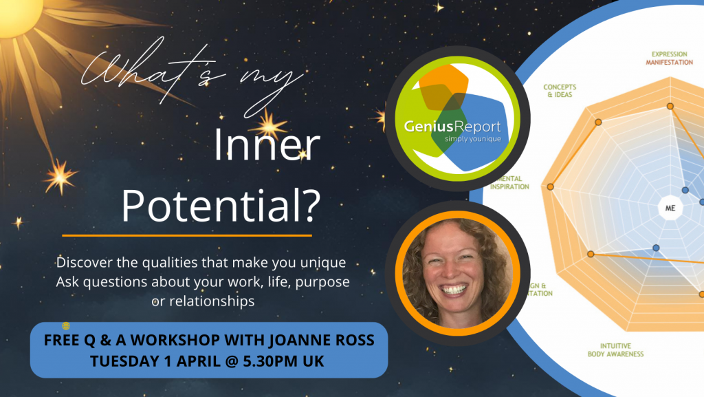 If you’re curious to discover more about your personality, purpose or potentials, you’re invited to join this 75-minute interactive workshop. Together we’ll use your GeniusReport as the basis for exploration.